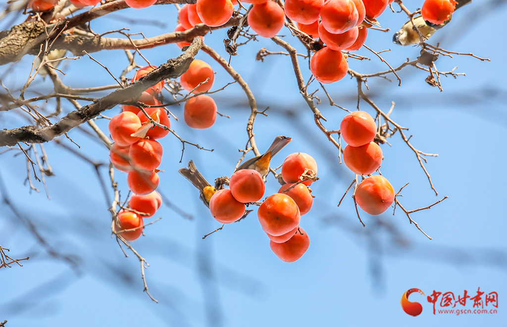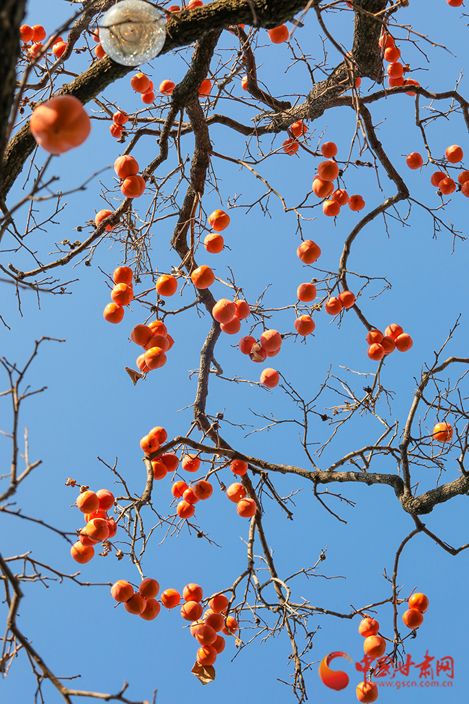 秋去冬來,萬物沉寂。在平?jīng)龀缧?,柿子樹上掛滿了果實,又是一年柿子紅。