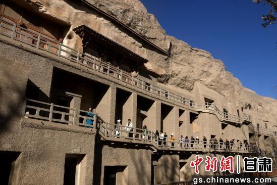 初冬時節(jié),游客走進世界文化遺產甘肅敦煌莫高窟欣賞燦爛的石窟藝術,品味悠久的敦煌歷史文化。