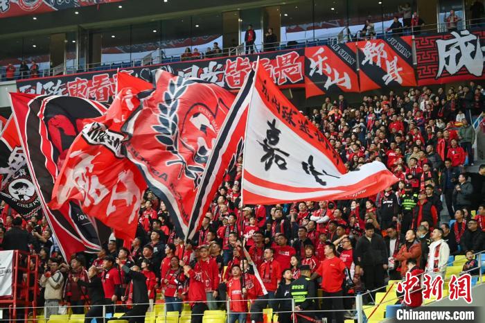 2025年3月2日,在四川成都舉行的2025賽季中超聯(lián)賽比賽中,成都蓉城隊(duì)(紅衣)主場迎戰(zhàn)天津津門虎隊(duì)?;鸨?ldquo;金牌球市”折射出成都賽事經(jīng)濟(jì)的日益崛起。劉忠俊 攝