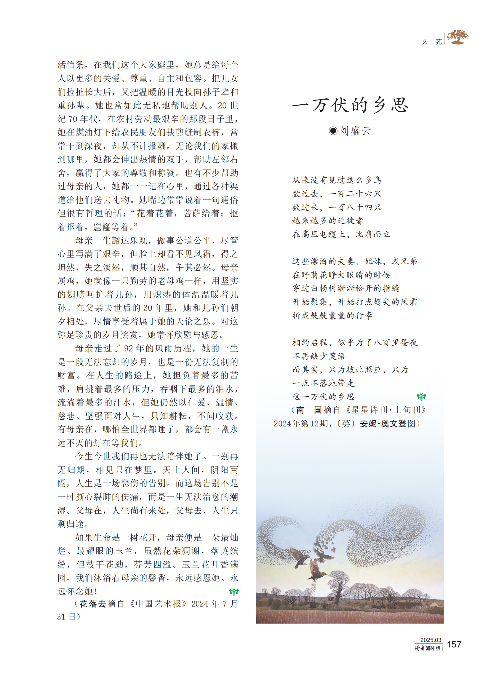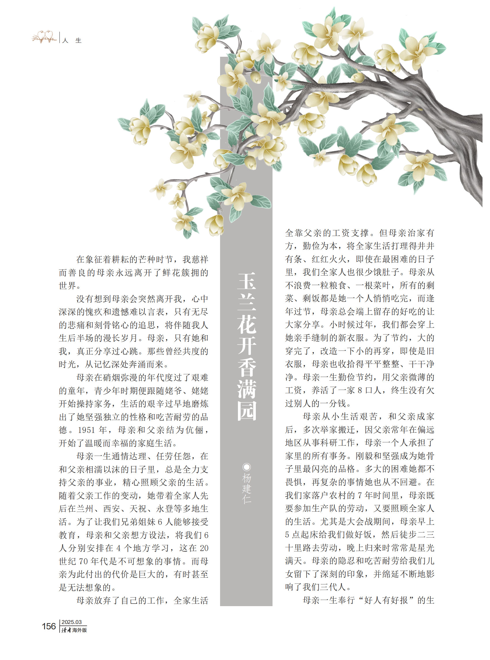 《讀者》(海外版)期刊發(fā)表?xiàng)罱ㄈ饰恼隆队裉m花開(kāi)香滿(mǎn)園》