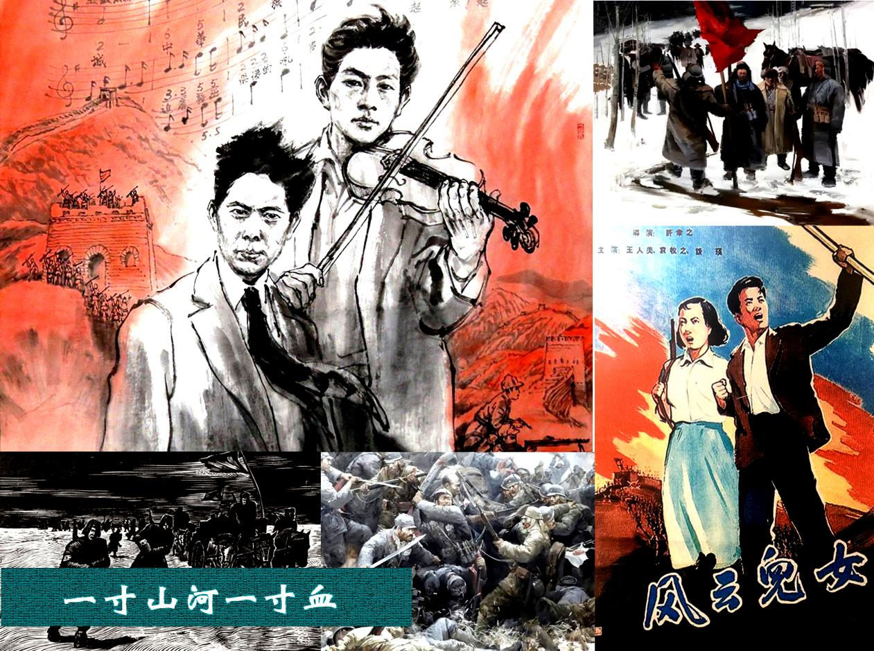 筆者在相關(guān)閱讀中接觸到許多《義勇軍進(jìn)行曲》創(chuàng)作同期的歌曲、誓詞、通電等史料。見到了《義勇軍誓詞歌》《血盟救國軍軍歌》等一些堪稱《義勇軍進(jìn)行曲》雛形的藍(lán)本。當(dāng)讀到其中“起來!起來!不愿當(dāng)亡國奴的人!……用我們身體筑起長城。……前進(jìn)??!前進(jìn)!向前進(jìn)!殺!殺!殺!”;又如“起來!不愿當(dāng)亡國奴的人們,用我們的血肉喚起全國民眾……中華民族到了最危險(xiǎn)的時(shí)候,起來!起來!”等歌詞時(shí),胸中激情難抑。這些同仇敵愾的時(shí)代強(qiáng)音最終集成于田漢、聶耳一九三五年四月完成的電影《風(fēng)云兒女》主題曲《義勇軍進(jìn)行曲》。當(dāng)年五月,隨著電影公映,《義勇軍進(jìn)行曲》迅速傳遍中華大地,成為鼓舞全國人民抵抗日本侵略的戰(zhàn)斗號(hào)角,后來又被確定為新中國的國歌并寫入憲法。筆者撫今追昔,萬千感慨,思如泉涌,寫就兩首《七律》,志念《義勇軍進(jìn)行曲》九十周年。