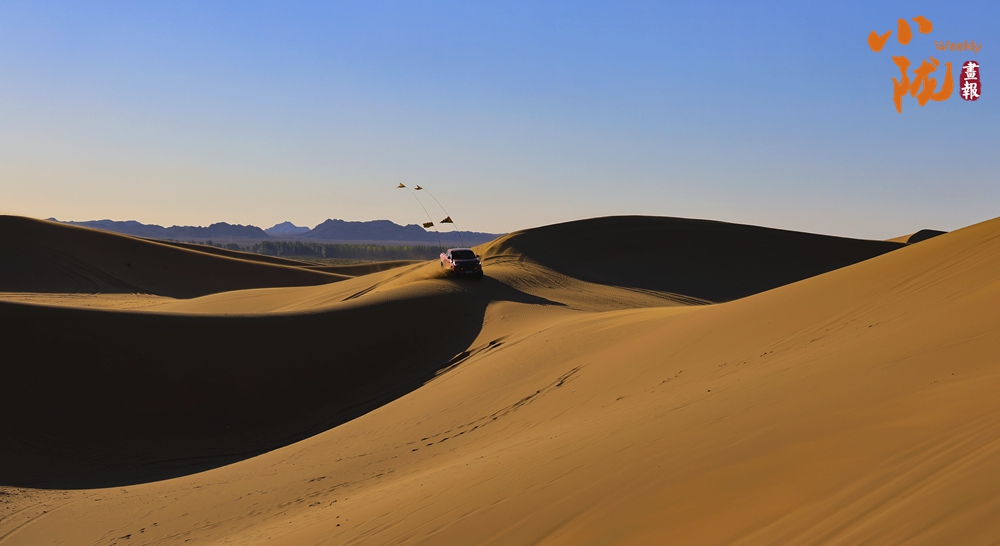 夕陽西下,極目遠(yuǎn)眺,在余暉照耀下,連綿起伏的沙丘似金色的海浪,一波接著一波,涌向天際。那細(xì)膩的沙紋,在陽光的輕撫下,宛如歲月鐫刻的痕跡,每一道褶皺都藏著故事。