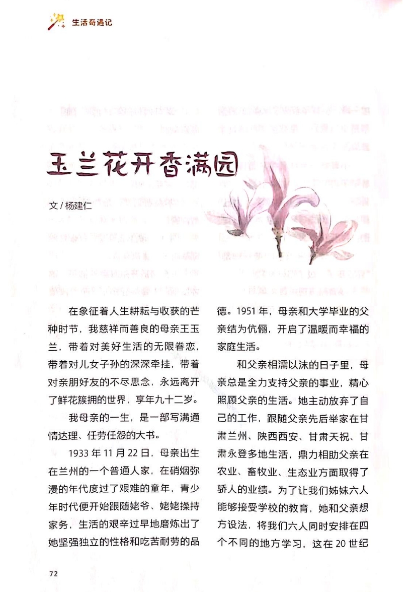 《中國校園文學(xué)》期刊發(fā)表楊建仁文章《玉蘭花開香滿園》