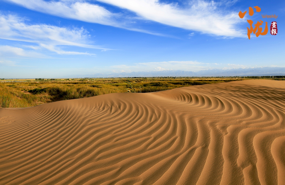 站在綠洲與大漠的結(jié)合處,觀賞四方風(fēng)景,眼前奇異的景致讓人驚嘆萬分:一邊是莽莽蒼蒼、雄渾博大、無邊無際的大漠海洋,一邊是郁郁蔥蔥、娟秀嫵媚的綠洲碧野。這是大自然杰出的造化,這黃色與綠色之間沒有任何過渡,兩色卻形成鮮明的對比,宛如畫家手下的色盤,黃綠分明、對比強(qiáng)烈而又和諧統(tǒng)一,令人叫絕?!?/p>