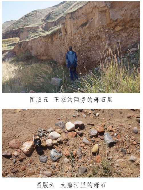 玉石山南麓有一條自東向西流過峽口鎮(zhèn)注入洮河的河——大碧河,《狄道州志》里稱為“打璧河” [12]。玉石山和山下大碧河之間有幾條溝,這些溝是上玉石山的必經(jīng)道路,也是雨水夾帶山上的石頭注入大碧河的通道。在甘肅臨洮馬家窯文化研究院李家功的引領(lǐng)下,我們對(duì)大碧河中下游和通往玉石山的三條支溝進(jìn)行了較系統(tǒng)的調(diào)查,調(diào)查方法是在訪問當(dāng)?shù)赜嘘P(guān)人員的基礎(chǔ)上,進(jìn)行野外實(shí)地考察。大碧河連接玉石山的支溝主要有三條:第一條大溝是王家溝,是玉石山和峽口鎮(zhèn)之間的通道,大雨過后附近的村民往往會(huì)在這條溝里撿到玉石。在王家溝靠近玉石山的茨泉子村,十多戶村民都拿出自己在溝中揀到的十余件山流水玉料(圖版四)供我們觀察、檢測(cè)。玉料大小不一,大者長軸約30厘米,多呈次圓狀,均有玉皮,內(nèi)部質(zhì)地多細(xì)膩,肉眼鑒定和XRF檢測(cè)結(jié)果表明,玉石主要包括黃綠色(含草花)透閃石玉、透輝透閃石玉及透閃石大理巖,另外還有螢石料。王家溝下游匯入大碧河入口段,發(fā)育三級(jí)階地,前人使用大型機(jī)械開挖二、三級(jí)階地礫石層(圖版五),據(jù)說在其中找到較多玉料,現(xiàn)政府已叫停。在階地礫石層中我們也撿到淺黃綠色透輝透閃石大理巖及半玉化的大理巖礫石,這些礫石是玉石山玉礦的近礦圍巖。王家溝匯入大碧河,因此大碧河中也可以撿到從王家溝滾落的玉石山上的玉石和其它巖石。我們?cè)诖蟊毯訊{口鎮(zhèn)段揀到較多直徑約3~5厘米來自玉石山的透閃石大理巖,巖石磨圓度高,成球狀或橢球狀,質(zhì)地較細(xì)膩。據(jù)當(dāng)?shù)厝酥v,也有人在大碧河峽口鎮(zhèn)段撿到過小塊的玉石;第二條溝是小溝——漆家溝,位于王家溝西面,雖位于玉石山正面,但鮮有聽到在溝里撿到玉石的消息;第三條溝是王家溝東面的石景峽,距離玉石山相對(duì)較遠(yuǎn),其溝腦是玉石山的東延部分?!兜业乐葜尽防镙d“打璧河,在州北三十里,源出石井峽,即打璧谷” [13]。這里的“石井峽”可能就是現(xiàn)在所說的“石景峽”,峽中腰有水冒出。但現(xiàn)在的大碧河不源于石景峽,而是源于洮河和渭河的分水嶺。石景峽雖可能是史籍上的打璧谷,且在峽里也撿到了透閃石大理巖礫石,但沒有發(fā)現(xiàn)玉石器和玉料。