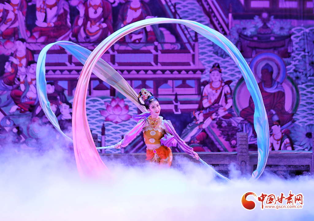 絲路漫漫、駝鈴聲聲……演出當(dāng)晚,演員們以精湛投入的表演,唱響了絲綢之路的友誼贊歌,同時(shí)也為觀眾展開(kāi)了一幅“活的敦煌壁畫(huà)”,從敦煌彩塑和壁畫(huà)中提煉出的“千手觀音”“反彈琵琶”“憑欄仙女舞”“霓裳羽衣舞”等舞蹈在舞臺(tái)上一一呈現(xiàn),深深打動(dòng)了現(xiàn)場(chǎng)觀眾,贏得無(wú)數(shù)掌聲與喝彩。