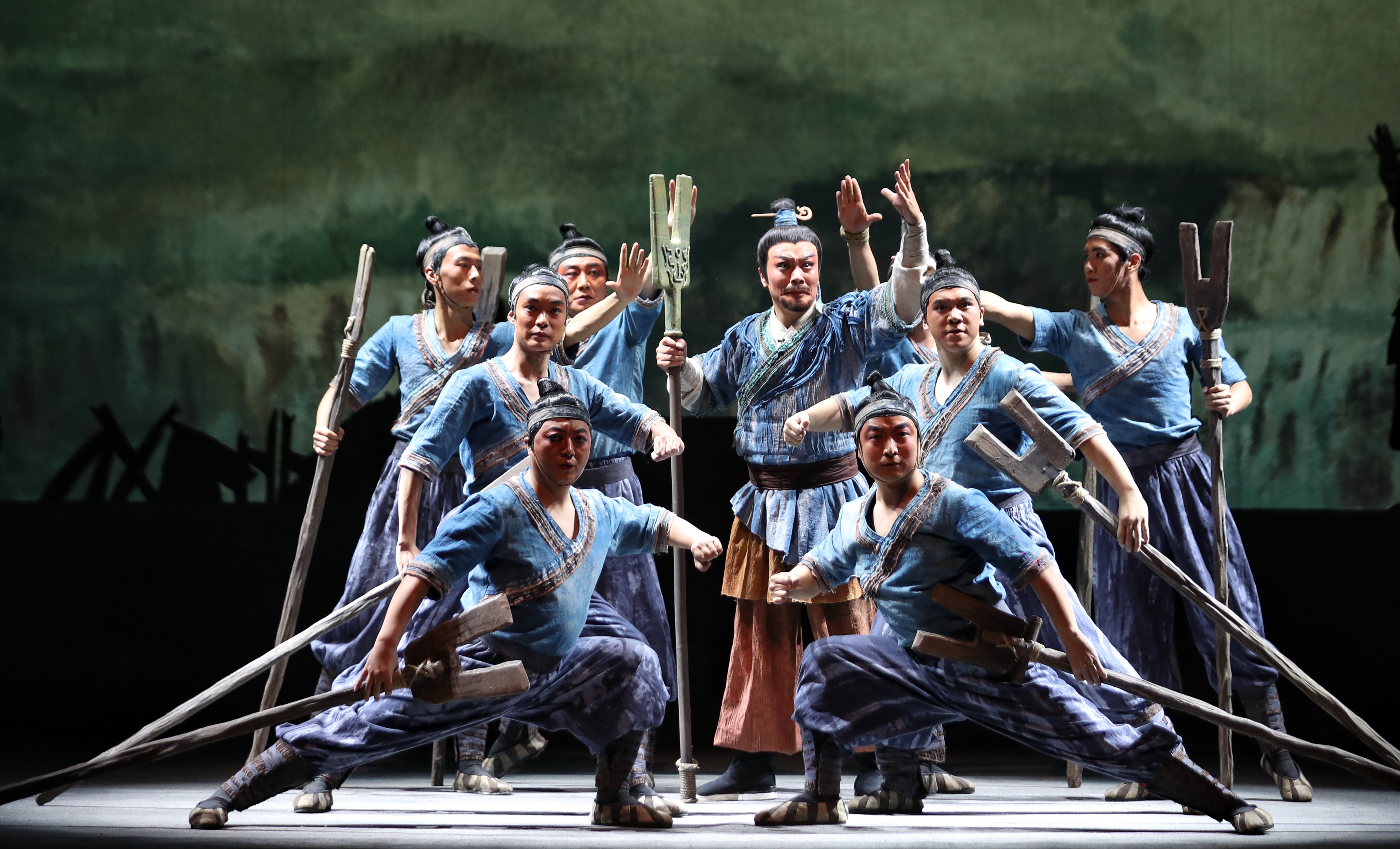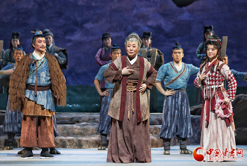 在兩個(gè)多小時(shí)的演出中,扮演“大禹”的邵炳德唱念做打俱佳,將一個(gè)人性化、頂天立地的大禹形象立于舞臺(tái)之上,三朵隴劇“梅花”雷通霞、佟紅梅、竇鳳霞,分別在劇中扮演山戎、大禹妻子涂嬌和禹母的角色,全體演員以精湛的表演,將大禹治水過程中天理與人性、親情與仇恨、生與死的抉擇演繹得淋漓盡致。