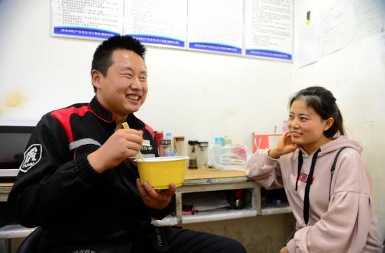“還是老婆做的飯菜好吃,外賣(mài)真吃不成!”在門(mén)店內(nèi),范宗英接待完客戶(hù),吃到了愛(ài)人親手做的飯菜,一邊聊著家常,一邊還不忘笑嘻嘻地貧嘴。
