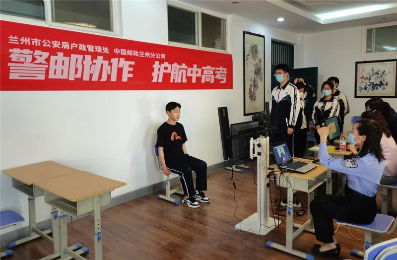 為了最大限度節(jié)省莘莘學(xué)子們緊張的復(fù)習(xí)時間,5月19日至20日,蘭州市公安局戶政管理處聯(lián)合中國郵政蘭州分公司,攜手七里河分局、七里河分局小西湖派出所及城關(guān)分局酒泉路派出所,市、區(qū)、派出所三級聯(lián)動,一起走進蘭州西北中學(xué)與蘭州一中,將辦證窗口前移至校園,通過現(xiàn)場拍攝照片、離線采集指紋等方法,為即將參加高考的學(xué)生們提供“足不出校”即可辦理居民身份證的便捷服務(wù),將“服務(wù)群眾零距離”的服務(wù)承諾落到實處。