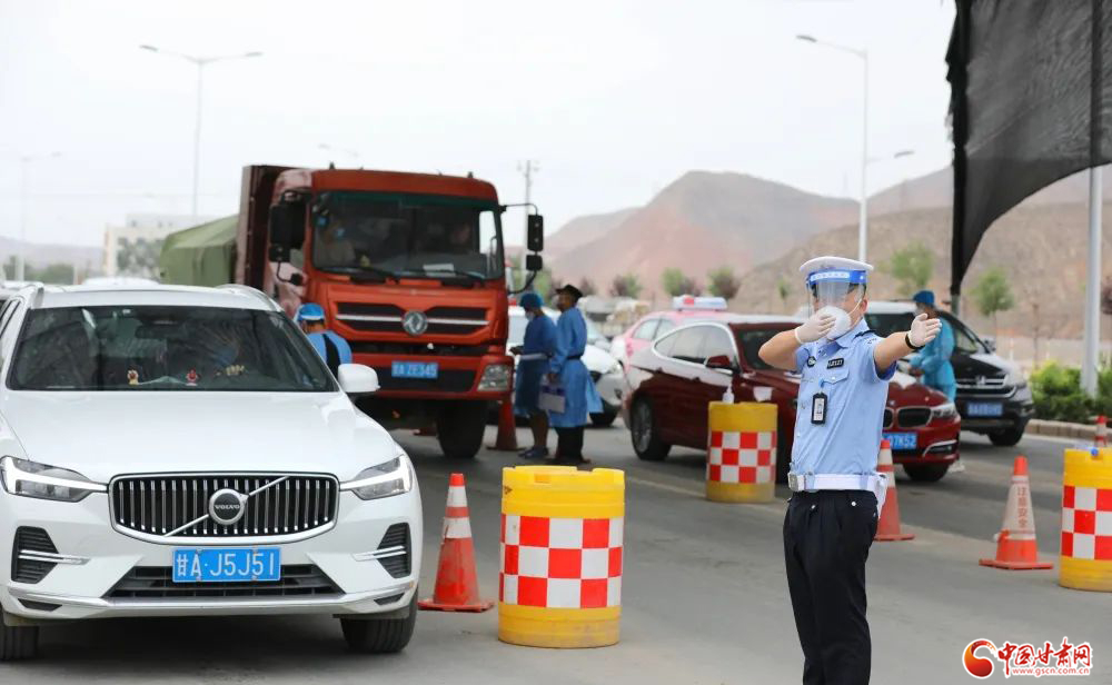 韓家河治安檢查站,執(zhí)勤民輔警協同配合責任成員單位工作人員嚴守蘭州南大門,做好跨地區(qū)出行人員勸導,全力筑牢“外防輸入 內防輸出”安全屏障。楊 釗/攝