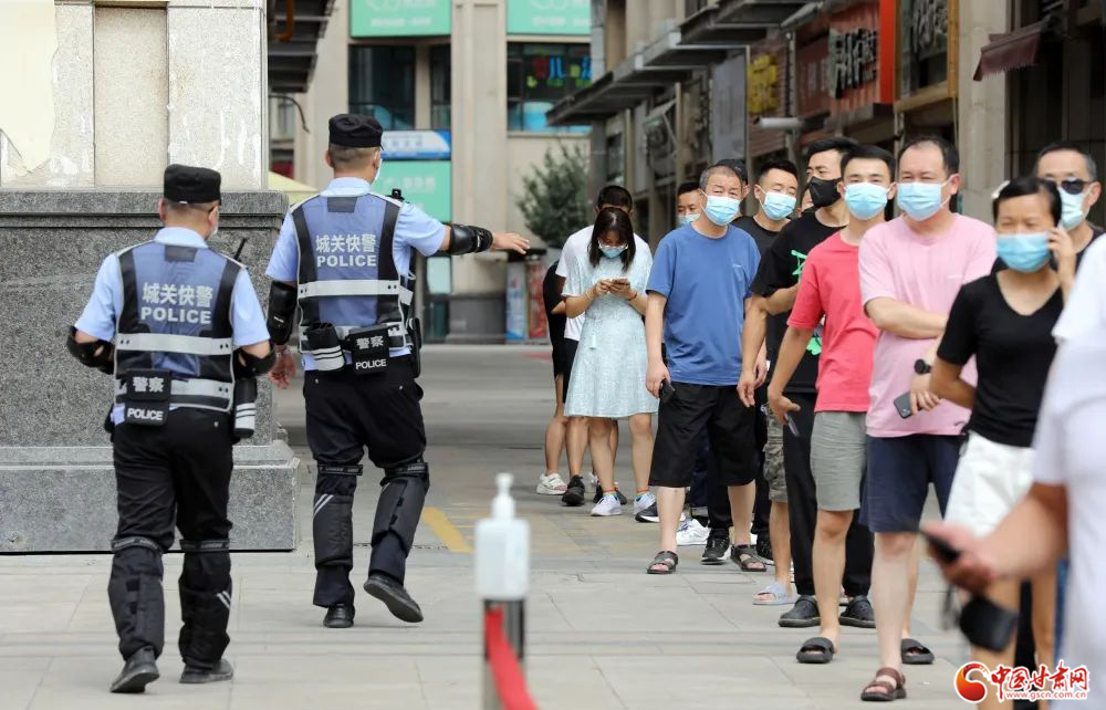 七里河分局龔家灣派出所民警在疫情防控第一線,開展現場秩序維護工作。七里河分局 馬興龍/攝