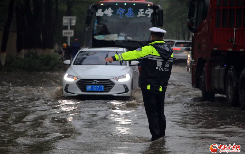 7月15日18時,鎮(zhèn)原縣鎮(zhèn)北公路中盛公司路段積水深達(dá)80公分,一輛轎車熄火被困,車門無法打開,車內(nèi)一名癲癇患者病情發(fā)作,鎮(zhèn)原縣巡邏民警及時發(fā)現(xiàn),成功救出車內(nèi)被困人員并送醫(yī),交警、治安民警聯(lián)合消防隊員迅速實施道路排水、恢復(fù)交通秩序。
