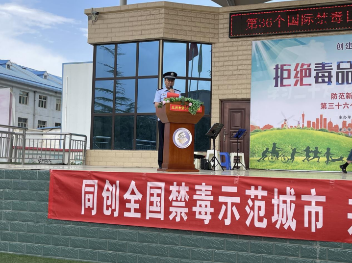 活動(dòng)以化工街派出所教導(dǎo)張華鵬向廣大師生、參與活動(dòng)人員領(lǐng)誓拉開(kāi)帷幕,宣言鏗鏘有力,承諾擲地有聲,一句句誓言,道出了大家對(duì)拒絕毒品、遠(yuǎn)離毒品的決心。西柳溝街道黨工委副書(shū)記袁得琴講話中對(duì)全體到場(chǎng)人員作出倡議,希望大家從自身做起積極加入到全社會(huì)禁毒宣傳志愿者隊(duì)伍中,營(yíng)造“禁毒斗陣、人人參與”的良好社會(huì)氛圍。