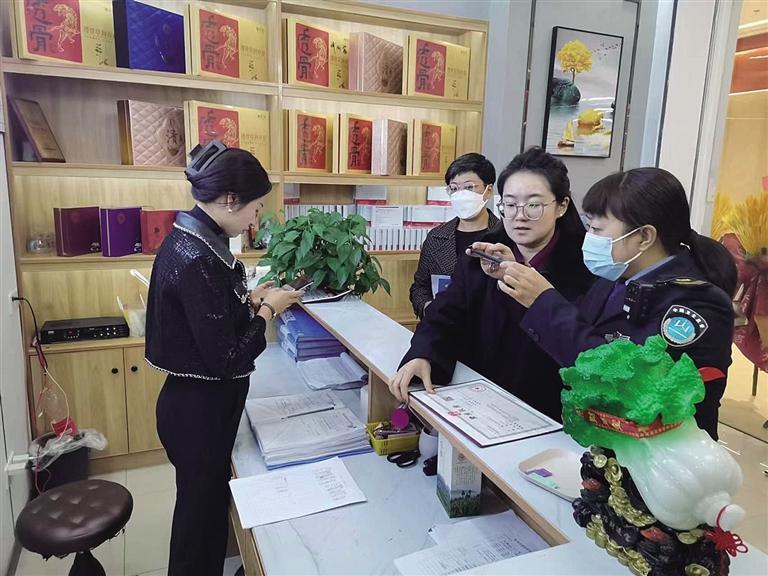 “因為老人年齡大了,被他們忽悠上當受騙,現(xiàn)在我們就希望將騙取老人的近35萬元如數(shù)退還,并賠償物質(zhì)和精神損失。”連日來,張女士將此事向相關(guān)部門予以投訴。10月30日,記者與張女士一同來到春媛芙美美容美體店采訪時,城關(guān)區(qū)衛(wèi)健局綜合監(jiān)督執(zhí)法所公共場所科和醫(yī)療市場科執(zhí)法人員也趕到現(xiàn)場。