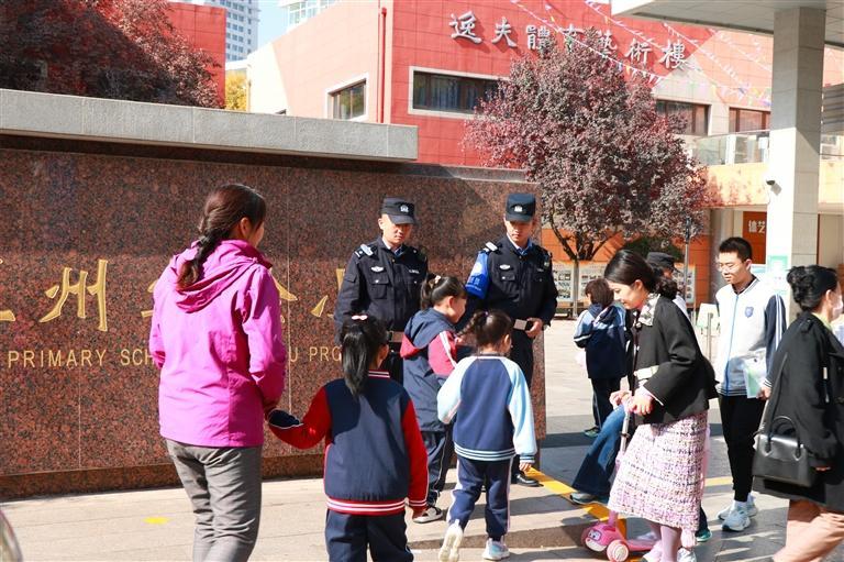 派出所民警在校園門口執(zhí)勤(蘭州日?qǐng)?bào)供圖)