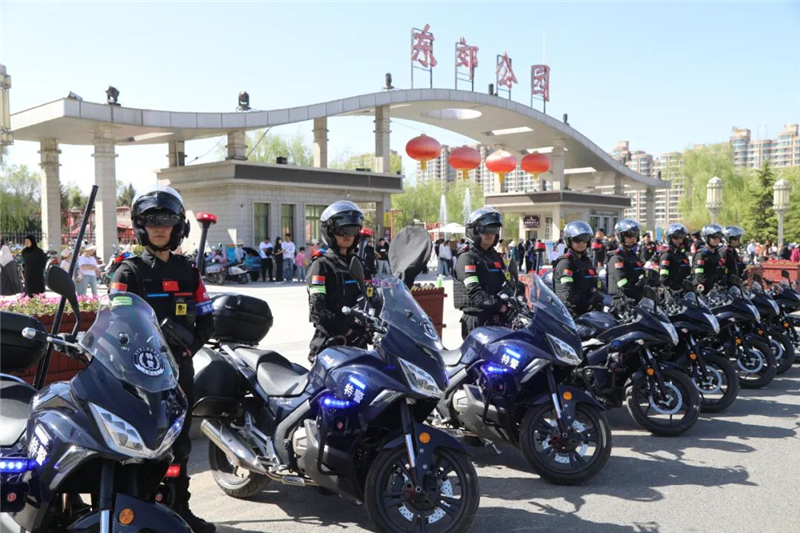 黑色警用摩托車、身背防搶奪電擊抓捕棍(俗稱“大寶劍”)、手持臂盾、腰挎“92式”手槍……夜幕降臨,華燈初上。五一期間,在臨夏市人流密集的街頭,你總能看到身著特警制服的警察,他們時而立正,矗立在人群中如一座大山;時而巡邏,穿梭在人群中如一張“地網”;呼嘯而過的特警摩托車,威風又神秘,成了群眾眼中最美的風景。