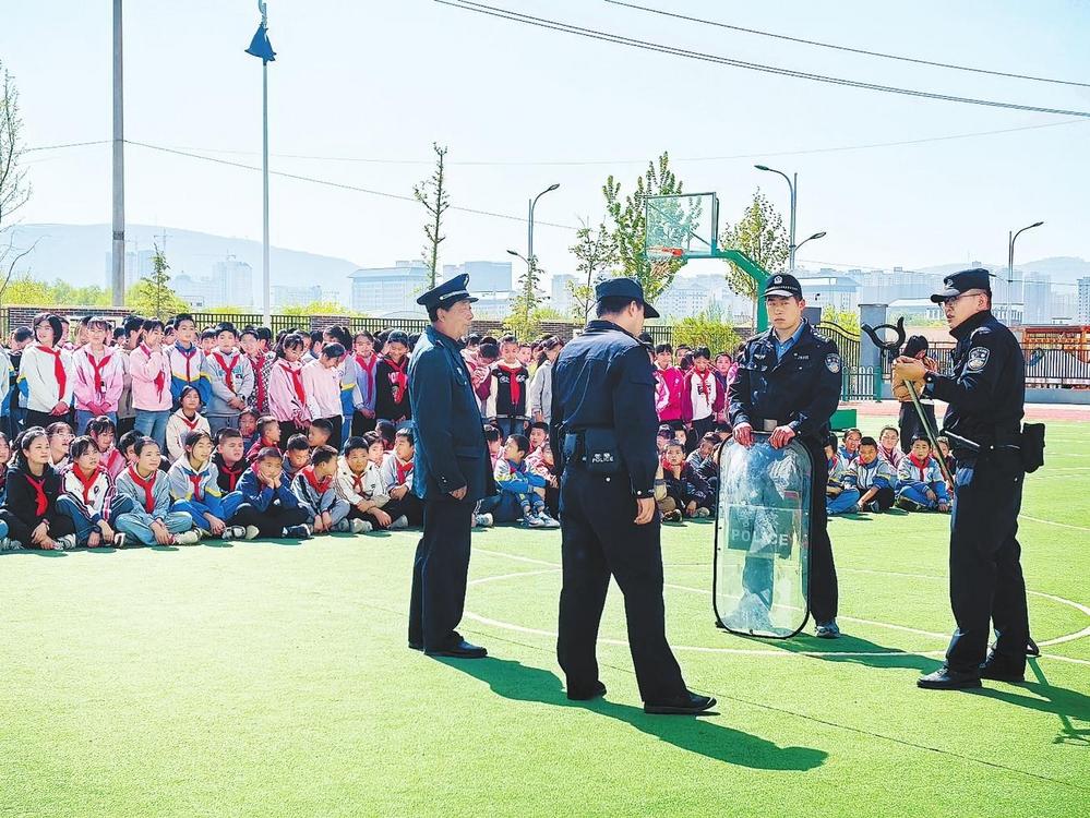 民警開展演練培訓(xùn)。5月12日,臨洮縣公安局西郊派出所組織民輔警走進(jìn)轄區(qū)學(xué)校開展反恐防暴應(yīng)急演練培訓(xùn)。新甘肅·甘肅法治報(bào)通訊員馬淑英攝