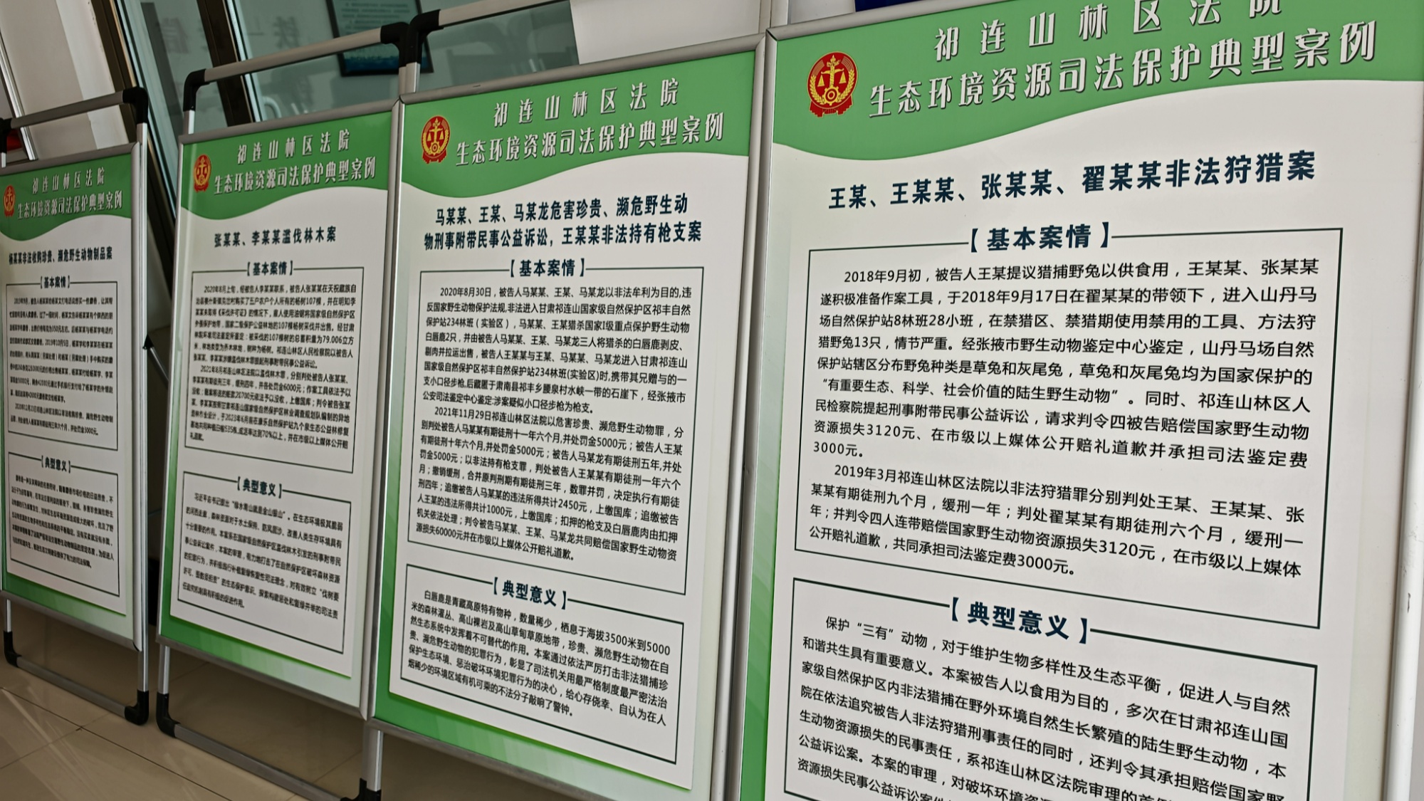 巡回審判庭的“法庭”從不在屋里。有時在油菜花田邊支起桌案,法槌一落,“王某前森林草原失火案”的庭審就成了最鮮活的普法課——這案子入選最高人民法院青藏高原生態(tài)保護典型案例,法官蹲在牧人身邊,指著草原防火設備說“咋用”,掰著指頭算“失火要擔啥責”,牧民們握著趕牧鞭聽得入神,連羊群都靜悄悄地伏在遠處。辦案點的展板上,非法采礦、危害珍貴野生動物等10個典型案例圖文并置,像10面透亮的鏡子,照得生態(tài)保護的法律紅線清清楚楚。