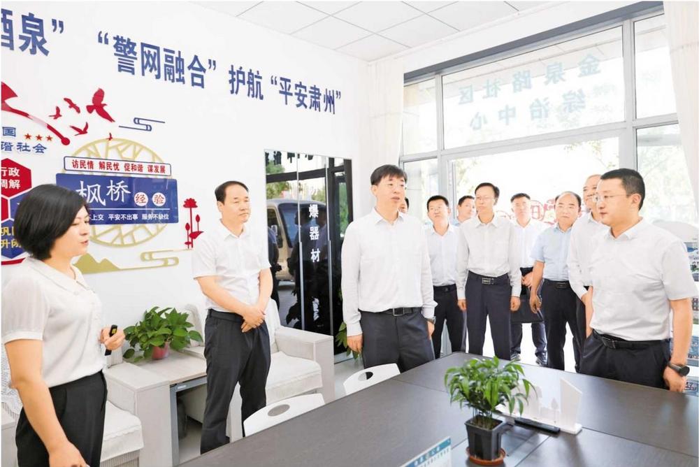 酒泉市領導在肅州區(qū)綜治中心調(diào)研(2025年7月9日拍攝)。