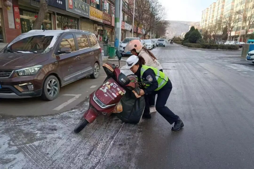 雨雪寒潮之中,定西公安交警始終堅守崗位,在疏堵保暢的同時,化身“暖心衛(wèi)士”,主動為受困群眾和車輛提供貼心救助。面對積雪路面車輛打滑、拋錨等突發(fā)情況,民輔警們不畏嚴(yán)寒,俯身推車、幫助安裝防滑鏈、排查車輛故障;針對出行不便的老人、學(xué)生等群體,主動攙扶護送,耐心解答指引、提供應(yīng)急幫助。一幕幕暖心瞬間在雨雪街頭不斷上演,贏得過往群眾紛紛點贊。