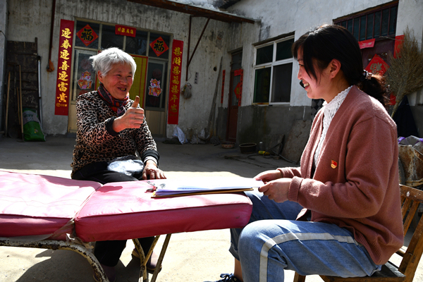 河南省孟州市紀委監(jiān)委組織干部深入街頭巷尾、農家庭院,傾聽群眾的堵心事,摸排政策落實的“中梗阻”,用求真務實的作風換來群眾的笑容和點贊。圖為該市紀檢監(jiān)察干部在槐樹鄉(xiāng)小石莊村核實惠農資金發(fā)放情況。(河南省孟州市紀委監(jiān)委 王朝暉 攝)