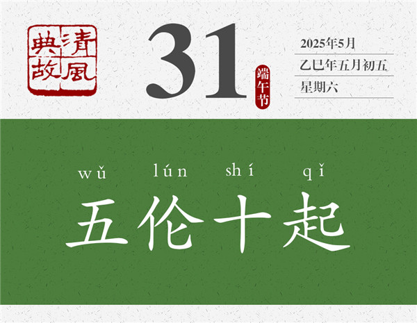 第五倫兄長的兒子經(jīng)常生病,他晚上要起來十次去照料,這說明他有私心。但是,他寧肯自己晚上起來十次去照料,也從未利用自己的職位或影響力讓別人代勞,這說明他公私分明。后人遂以“五倫十起”為典,形容于私有情分,于公有原則。李瀚《蒙求》:“劉整交質(zhì),五倫十起。”劉整,南朝齊梁時(shí)人,任職中軍參軍,為人刻薄而貪婪。有一次,侄子在他家里住了十二天,他便親自上門去向寡嫂討米、索償飯費(fèi),寡嫂出門未歸,他竟然拿走了寡嫂家的車帷以作抵押。