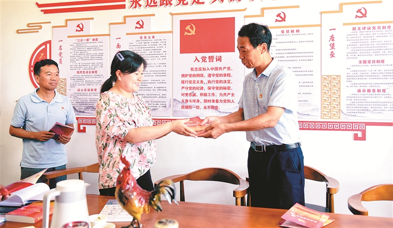 近日,安徽省宣城市宣州區(qū)紀(jì)委監(jiān)委第一黨支部來到“1+1”黨建共建村級黨支部,為村級紀(jì)檢委員送上“政治生日”賀卡。姚駿 攝