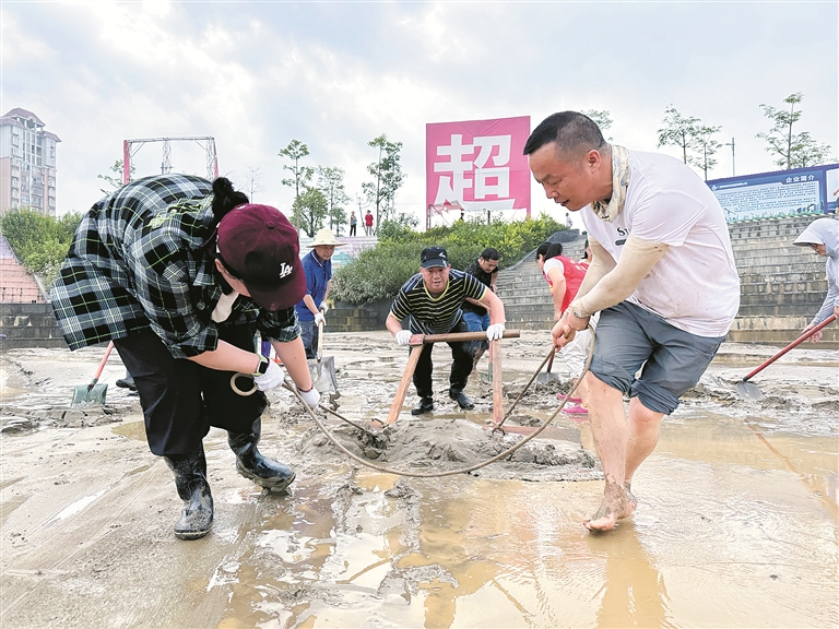 廣西壯族自治區(qū)柳州市融安縣紀(jì)委監(jiān)委聞“汛”而動,緊盯防汛統(tǒng)籌協(xié)調(diào)等關(guān)鍵環(huán)節(jié)開展全程監(jiān)督檢查。圖為日前,該縣紀(jì)檢監(jiān)察干部在河?xùn)|龍舟廣場開展災(zāi)后清淤工作。覃燕 攝