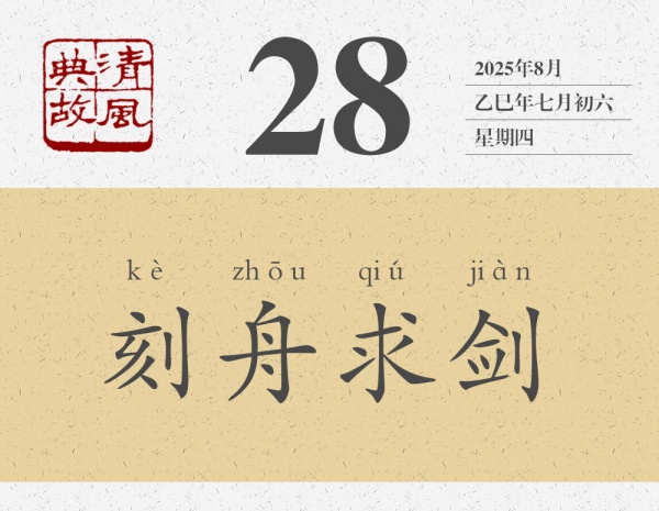 東西遺失了,沒有找回來,雖然很遺憾,但并沒有人覺得可笑。楚人劍掉到了江里,同樣沒有找到劍,但為什么我們不覺得遺憾,反而覺得可笑呢?那個(gè)人的劍掉到江里了,那個(gè)人的腦子是不是也掉到江里了呢?后人即以“刻舟求劍”為典,比喻墨守成規(guī),不知變通,處理事情的方法、解決問題的辦法不能隨著形勢(shì)的變化而變化,不能隨著事物的發(fā)展而發(fā)展。也用來形容事過境遷,追悔莫及。南宋高僧宗杲《頌古》其四十曰:“出門握手話分?jǐn)y,古路迢迢去莫追。卻笑波心遺劍者,區(qū)區(qū)空記刻舟時(shí)。”黃庭堅(jiān)詩《追憶余泊舟西江事次韻》:“老大無機(jī)如漢陰,白鳥不去相知深。往事刻舟求墜劍,懷人揮淚著亡簪。”其中的“空記刻舟時(shí)”“刻舟求墜劍”,都是對(duì)“刻舟求劍”的化用。