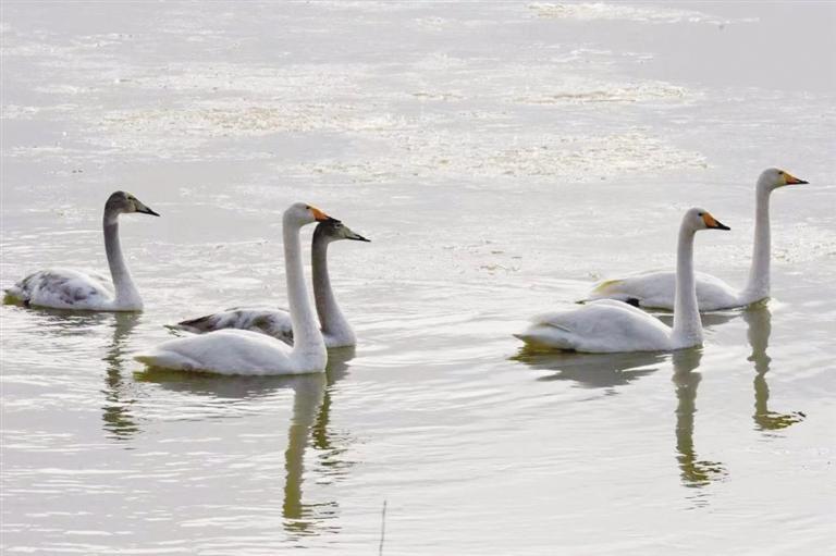 中國(guó)甘肅網(wǎng)1月7日訊 據(jù)蘭州日?qǐng)?bào)報(bào)道(記者 董永前 攝)最近幾天,西固區(qū)達(dá)川鎮(zhèn)三江口水域,成群天鵝在這里“落戶(hù)安家”,成為當(dāng)?shù)匾患恍〉男侣?,吸引不少市民和游客前?lái)觀(guān)賞。
