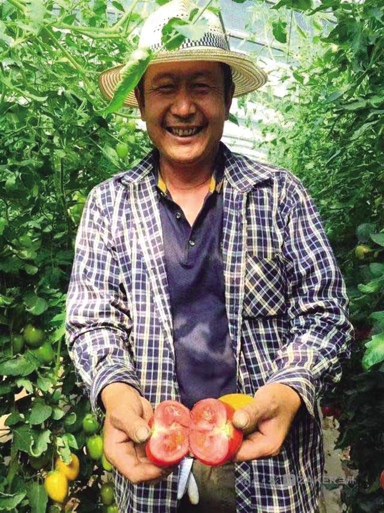 2019年,甘憲明在政府的組織下到山東壽光學(xué)習(xí)最先進(jìn)的水肥一體化種植技術(shù),回來(lái)后又在政府的扶持下將原來(lái)的溫室更新為第六代壽光模式標(biāo)準(zhǔn)化溫室。“第六代溫室不但能適時(shí)調(diào)節(jié)溫度,土墻厚度更是增加到了6米,我的西紅柿產(chǎn)量不但翻倍了,糖分也進(jìn)一步提高,真的是小時(shí)候才能吃到的味道。”甘憲明對(duì)大家說(shuō),“大家如果也想種植,我一定傾囊相授,給大家傳授技術(shù),并且我的合作社還會(huì)保價(jià)收購(gòu)、無(wú)償幫銷(xiāo)。”甘憲明的一席話,讓大家對(duì)特色種植更加充滿了信心。