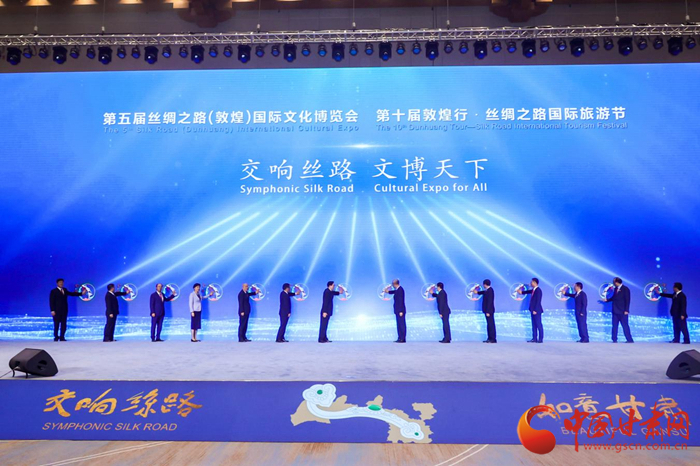 第五屆絲綢之路(敦煌)國際文化博覽會和第十屆敦煌行·絲綢之路國際旅游節(jié)于2021年9月24日—26日在甘肅省敦煌市隆重舉行。中共中央政治局委員、中央書記處書記、中宣部部長黃坤明以視頻形式出席開幕式暨高峰會議并發(fā)表主旨演講,300多名國外、國際組織及國內(nèi)省區(qū)市代表現(xiàn)場參加會議,400多萬網(wǎng)友線上參加有關(guān)活動。大會以習(xí)近平新時代中國特色社會主義思想為指導(dǎo),認真落實“一帶一路”倡議,以線上線下相結(jié)合的方式舉辦一系列主體活動,有力促進絲路沿線各國文化交流與旅游合作,有效增進文化認同與情感共鳴,是一次展示中國文化自信、共商“一帶一路”建設(shè)、推動文旅融合發(fā)展的盛會,是一次提升甘肅對外影響力、展示開放新形象、凝聚發(fā)展新動力的盛會,得到了國際社會的廣泛贊譽和一致好評。