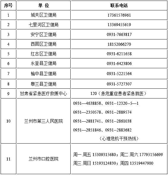 •蘭州市域“非綠碼”定點(diǎn)醫(yī)院24小時(shí)咨詢熱線•