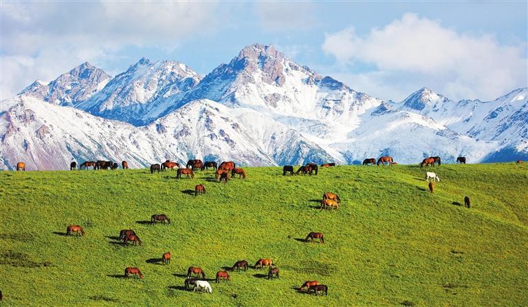 祁連山下的山丹馬場。甘肅省持續(xù)加強祁連山全域保護和系統(tǒng)修復,依托現(xiàn)代科技建設“智慧祁連”,形成“天地空”一體化監(jiān)測網(wǎng)絡,生態(tài)治理走上正規(guī)化信息化軌道。王 超攝(中經(jīng)視覺)