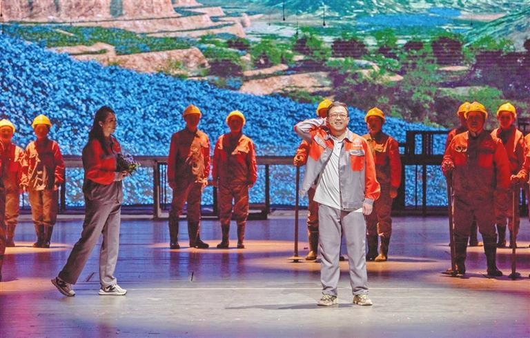 在兩個小時的演出中,全體演職人員以群像式表演,將蘭渝鐵路建設者的科技創(chuàng)新精神、愚公移山精神、大國工匠精神完美展現(xiàn)在舞臺上。“那座山,不太高,胡麻花開山上頭,山根根,開洞洞,火車鉆進山里頭……”伴隨著悠揚的謝幕音樂,劇場內爆發(fā)出了經久不息的熱烈掌聲。