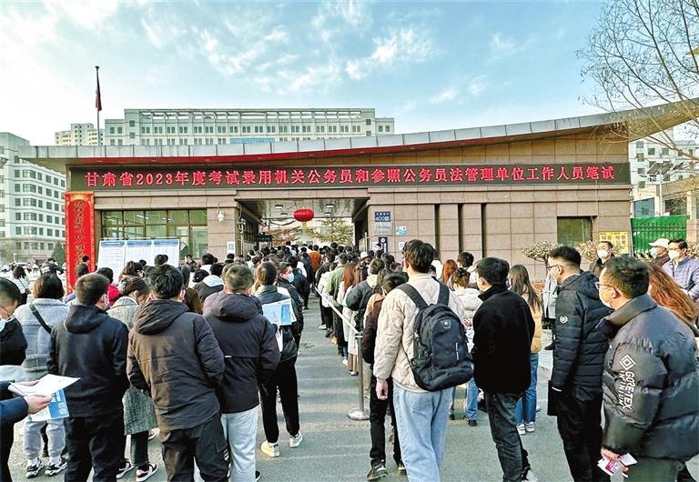 2月25日至26日,甘肅省2023年度考試錄用公務(wù)員筆試在13個(gè)市州同時(shí)進(jìn)行。今年全省共設(shè)置111個(gè)考點(diǎn)、4363個(gè)考場(chǎng),13萬(wàn)名考生報(bào)名參加考試,計(jì)劃招錄4249人,比2022年招錄2364名增加79.7%,招錄總?cè)藬?shù)創(chuàng)歷史新高。