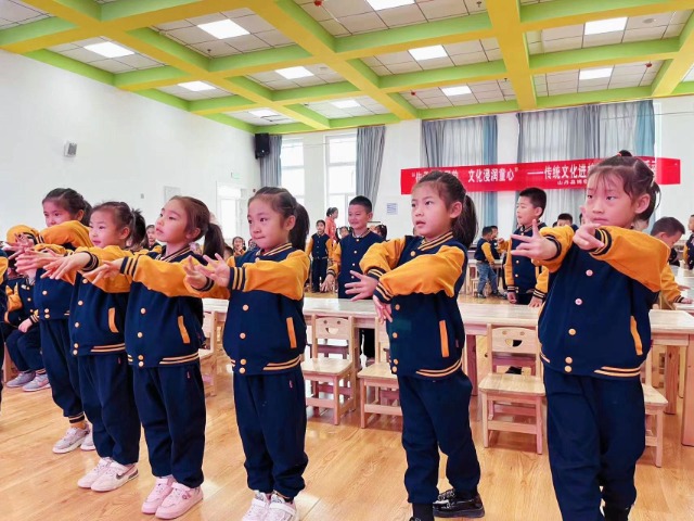 孩子們模仿了戲曲選段中的動(dòng)作。山丹縣東街幼兒園供圖
