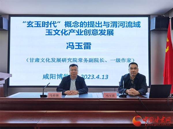 中國甘肅網(wǎng)4月13日訊 為進(jìn)一步促進(jìn)博物館學(xué)術(shù)研究交流創(chuàng)新,激發(fā)博物館發(fā)展活力,持續(xù)推動博物館高質(zhì)量發(fā)展,陜西咸陽博物院于4月13日下午3點(diǎn)舉辦第二期“咸博大講堂”專題講座,甘肅文化發(fā)展研究院常務(wù)副院長、一級作家馮玉雷作了題為《“玄玉時代”概念的提出與渭河流域玉文化產(chǎn)業(yè)創(chuàng)意發(fā)展》的學(xué)術(shù)報告。咸陽博物院院長馬社強(qiáng)主持講座。
