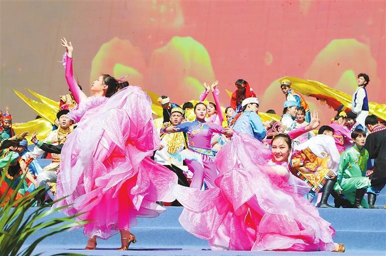 隨著曼妙激昂的舞蹈《石榴花開》上演,這場屬于“花兒”的盛會正式啟幕。隨后,《雪白的鴿子》《巴西古溜溜》、優(yōu)雅大氣的舞蹈《吉祥歡歌》《絲路民族風》《今夜草原有雨》《白牡丹令》等經典歌舞節(jié)目精彩上演,贏得臺下陣陣掌聲。甘肅籍民謠歌手張尕慫帶來的《等風來》更是將現場氣氛推向高潮,來自各個民族的數千觀眾沉浸在這場非遺文化盛宴中。