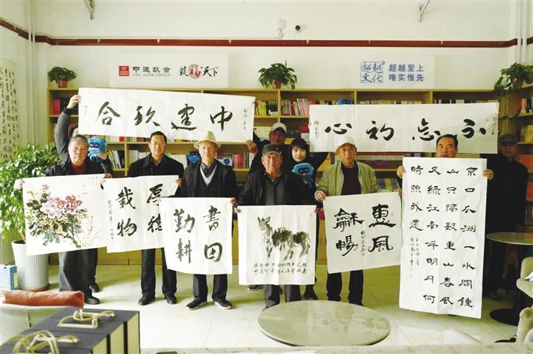 “家門口就有書屋,環(huán)境特別好,大人小孩都愛去。”康樂縣群眾對(duì)胭脂湖公園內(nèi)的中建玖合書屋豎起大拇指。走進(jìn)書屋,濃濃書香撲面而來,仿古磚、木質(zhì)書架等古香古色的室內(nèi)布置與當(dāng)?shù)厝罕妱?chuàng)作的書畫作品渾然一體,彰顯雅致。
