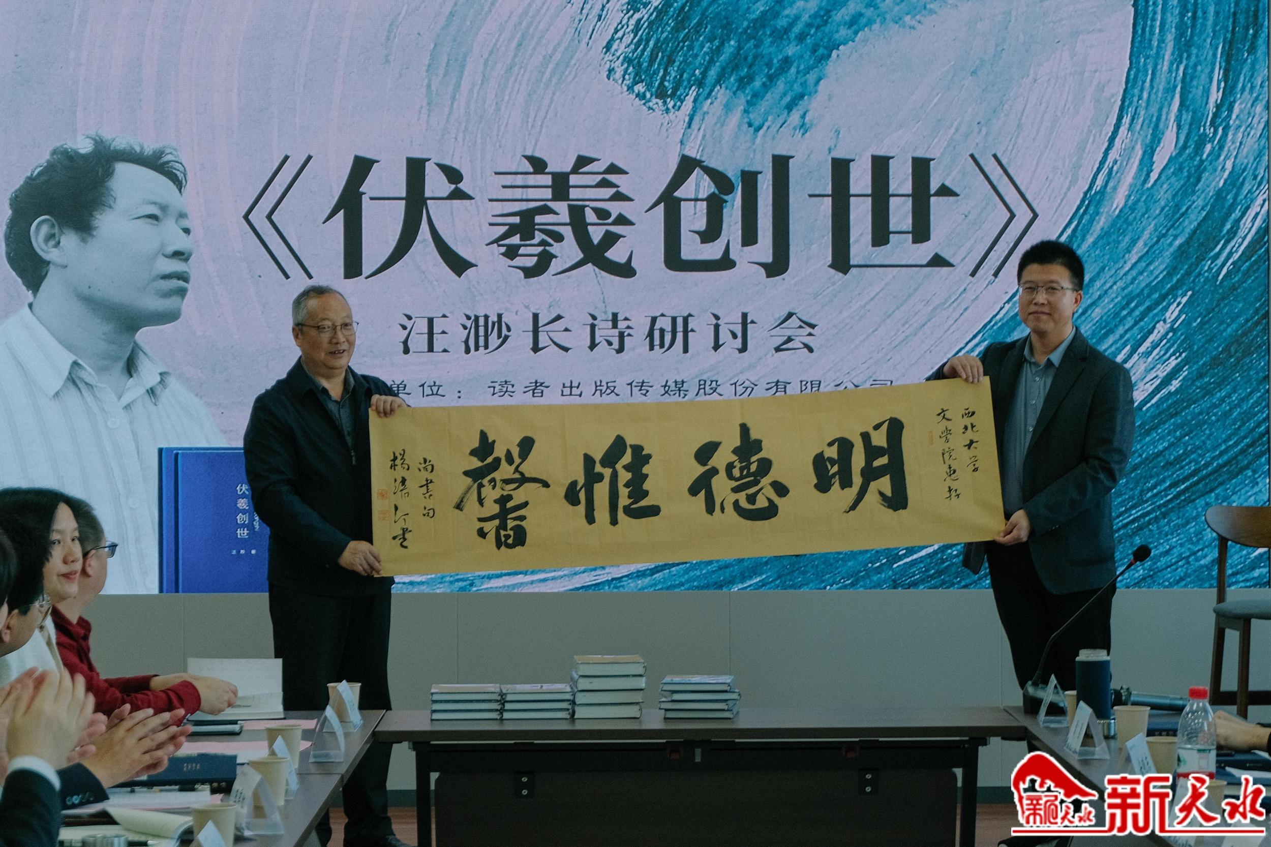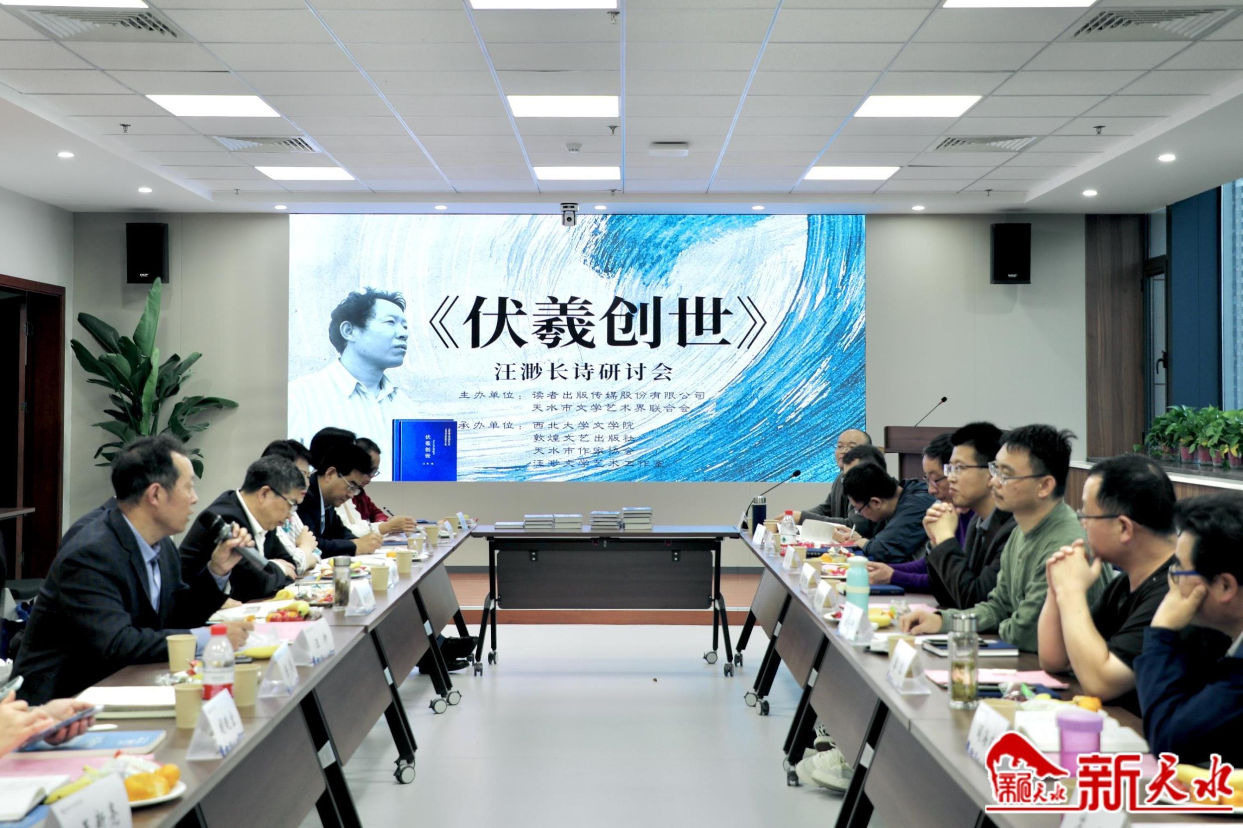 新天水訊【記者楊華 陳光毅】10月14日,天水詩人汪渺長詩《伏羲創(chuàng)世》研討會在西北大學(xué)文學(xué)院舉辦。本次研討會由讀者出版?zhèn)髅焦煞萦邢薰?、天水市文?lián)主辦,西北大學(xué)文學(xué)院、敦煌文藝出版社、天水市作協(xié)、汪渺文學(xué)藝術(shù)工作室承辦。