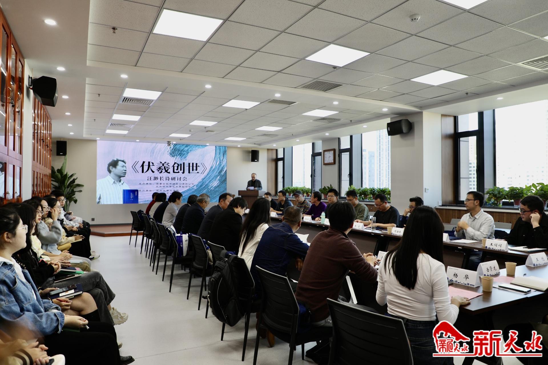 西北大學(xué)文學(xué)院副院長陳然興主持研討會。西北大學(xué)文學(xué)院副院長陳曉輝致辭。天水市文聯(lián)黨組書記、主席楊清汀,敦煌文藝出版社社長楊繼軍,詩人、評論家宋寧剛,導(dǎo)演、作家、詩人陳非等來自甘肅及陜西兩地的作家、評論家、導(dǎo)演、編輯共約30人,就汪渺作品《伏羲創(chuàng)世》展開深入交流,在史詩的界定、文本閱讀感受以及作品的再創(chuàng)造等層面進(jìn)行探討。
