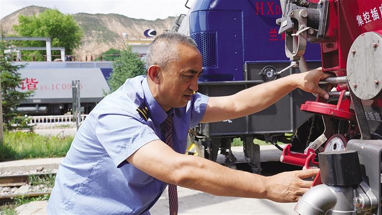 中國甘肅網(wǎng)7月9日訊 據(jù)蘭州晚報報道(記者 譚安麗 文/圖 通訊員 趙童)仲夏時節(jié),陽光明媚,沐浴著大西北的陽光,一列飛馳的鋼鐵巨龍在隴海線群山中穿行。駕駛室內(nèi),56歲的司機劉曉明手握閘把、眼睛緊緊注視前方,操縱著機車穿山越谷,快速馳騁。