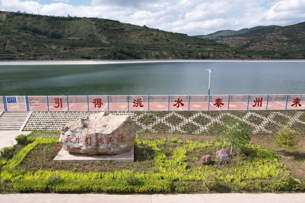 這是近日在天水市秦州區(qū)拍攝的天水市城區(qū)引洮供水工程楊家灣調(diào)蓄水池(無(wú)人機(jī)照片)。新華社記者范培珅攝