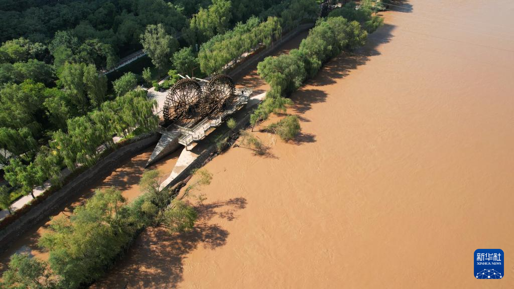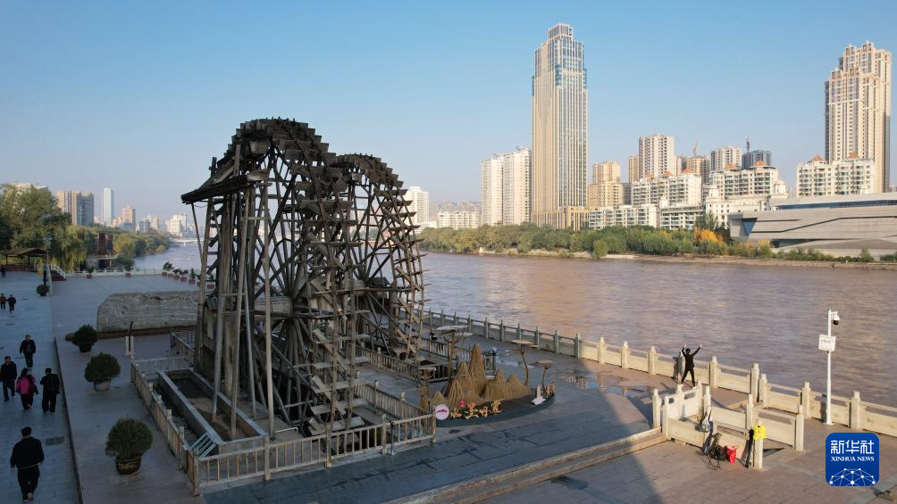 這是位于蘭州市城關(guān)區(qū)的蘭州水車博覽園內(nèi)的水車(9月24日攝,無人機(jī)照片)。新華社記者陳斌攝