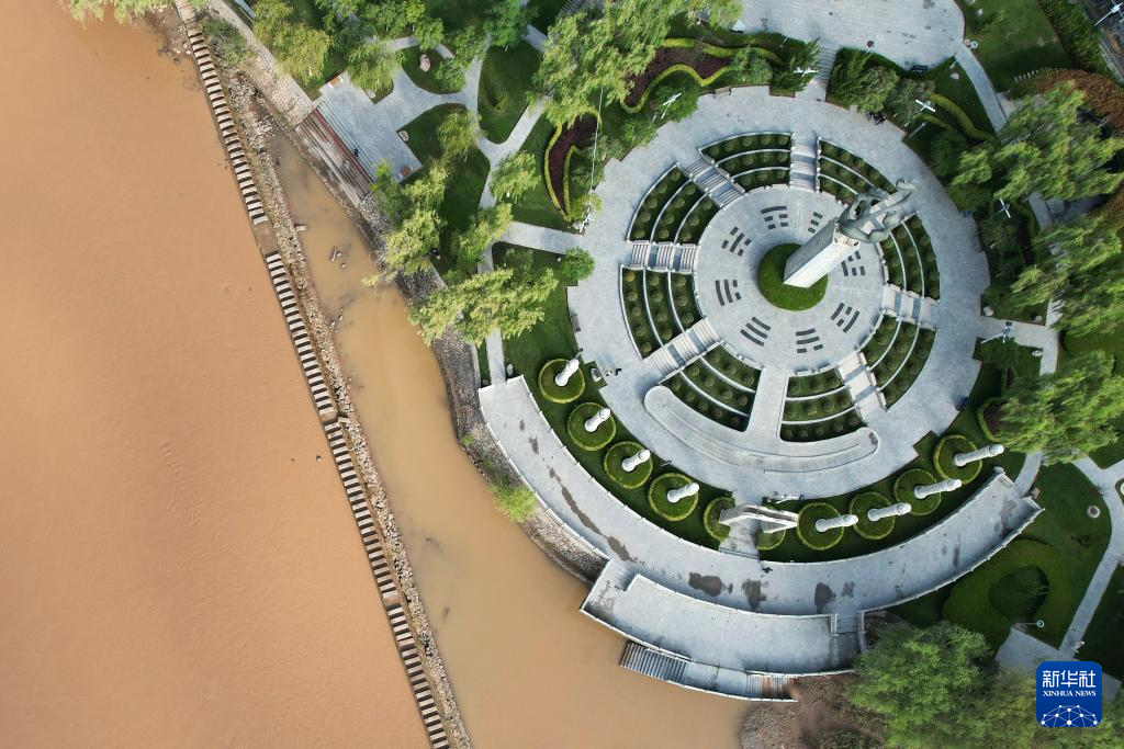 這是位于黃河蘭州段北岸的龍?jiān)垂珗@(9月25日攝,無人機(jī)照片)。新華社記者陳斌攝