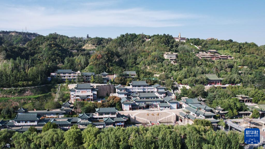 這是坐落于黃河蘭州段北岸白塔山西麓的蘭州碑林(9月23日攝,無人機(jī)照片)。新華社記者陳斌攝