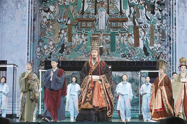 音樂話劇《受到召喚·敦煌》由國家文物局、文化和旅游部藝術(shù)司、文化和旅游部產(chǎn)業(yè)發(fā)展司及省委宣傳部、敦煌研究院、敦煌市人民政府支持,中國國家話劇院出品演出,總臺央視網(wǎng)、央視頻、北京大麥文化傳播有限公司、北京國話數(shù)字文化科技有限公司聯(lián)合出品。12月13日至15日,該劇將在上海梅賽德斯-奔馳文化中心繼續(xù)上演。