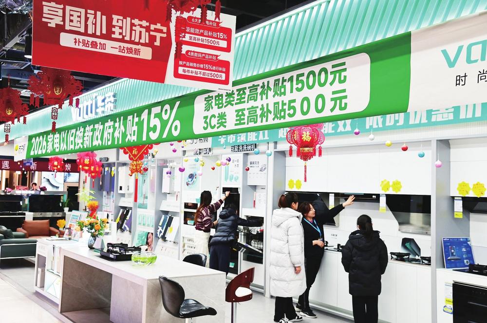 大寒節(jié)氣剛過,蘭州西關(guān)商圈的蘇寧易購超級體驗店內(nèi)已是暖意融融。蘭州市民張欣麗盯著一款海信電視的價格標(biāo)簽感慨:“這款85英寸的電視機(jī)原價7411元,疊加國補(bǔ)、門店優(yōu)惠后,到手6299元,這波福利太實在了。”她果斷下單的背后,是2026年“新國補(bǔ)”政策在甘肅落地后,消費熱潮涌動的一個縮影。