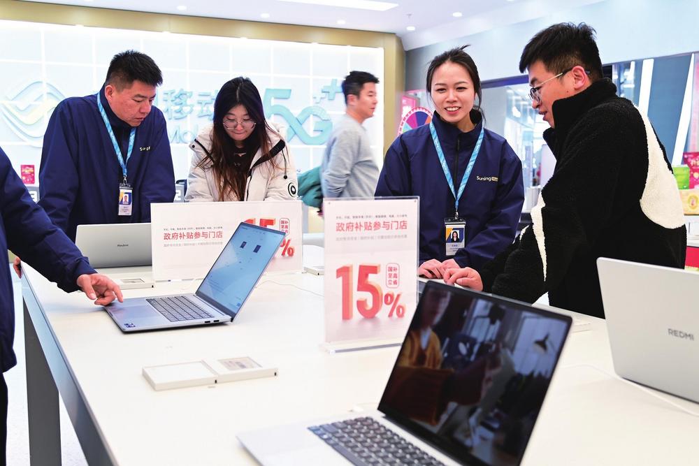 電腦等3C數(shù)碼產(chǎn)品享15%國補(bǔ)補(bǔ)貼,吸引眾多消費者到店咨詢選購。 本版圖片由新甘肅·甘肅經(jīng)濟(jì)日報記者瞿娟攝